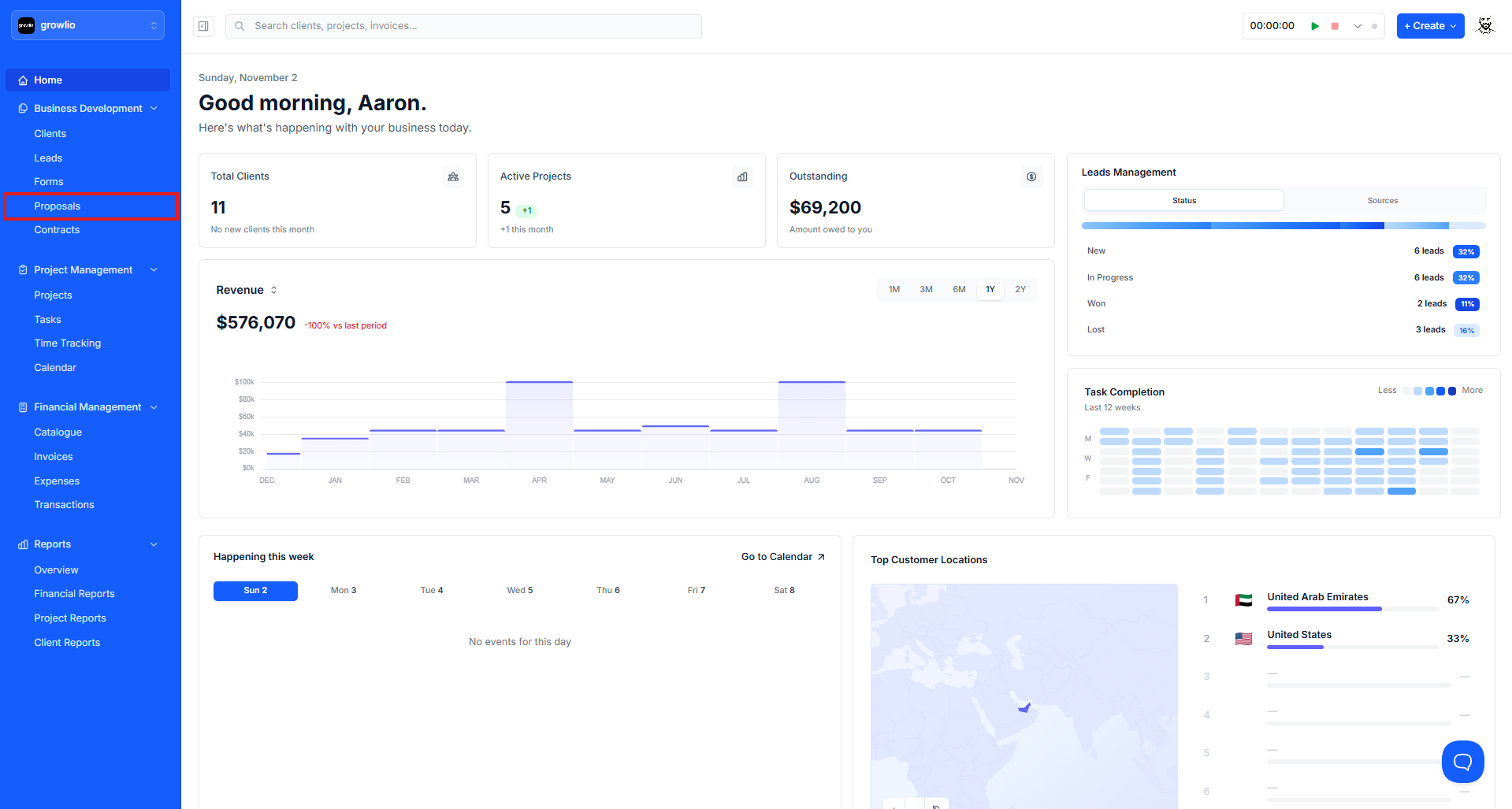 Proposals are essential for winning new business. With growlio's proposal system, you can create beautiful, professional proposals that showcase your services, outline pricing, and make it easy for clients to accept your offer. This guide walks you through creating your first proposal from start to finish.