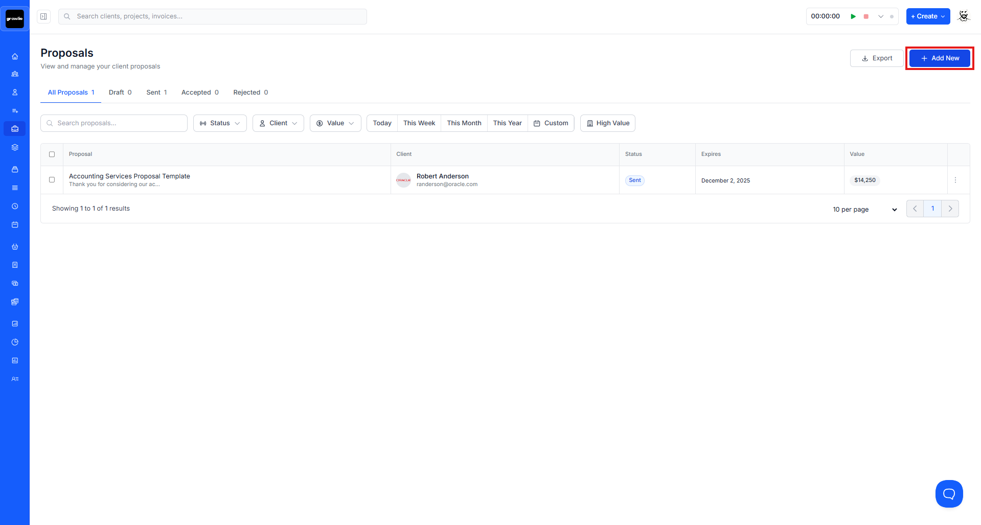 In the top-right corner, click the blue Add New button to open the proposal creation modal.