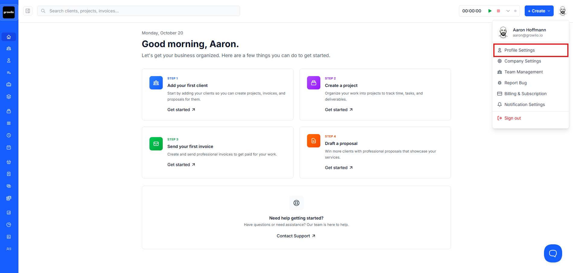 Your profile is your personal workspace in growlio. Setting it up helps team members recognize you, ensures you receive notifications correctly, and personalizes your experience. This guide walks you through configuring your profile settings, uploading a profile picture, and securing your account.