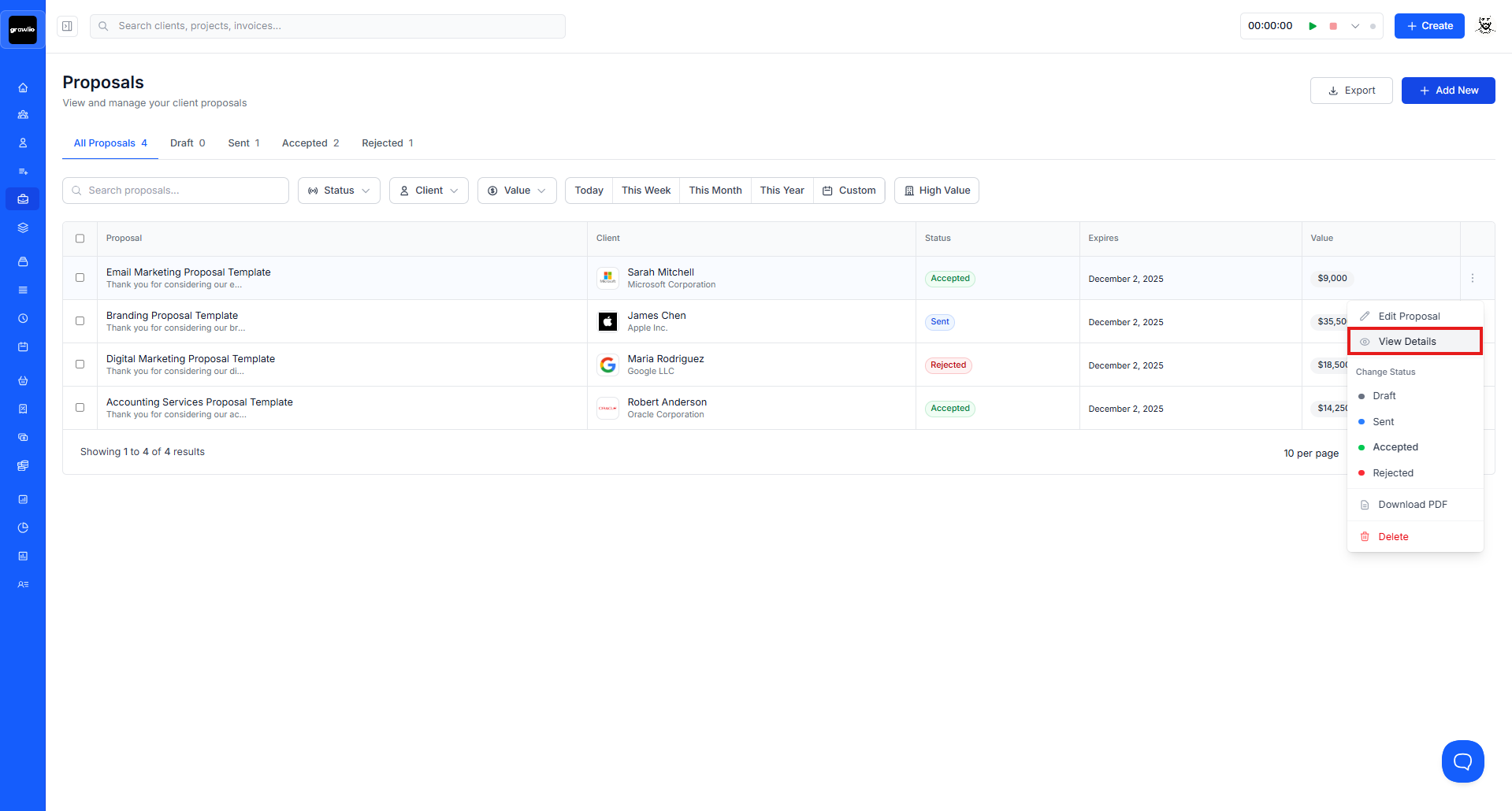 Go to Business > Proposals to access your proposals list. Locate the proposal you want to download as a PDF.