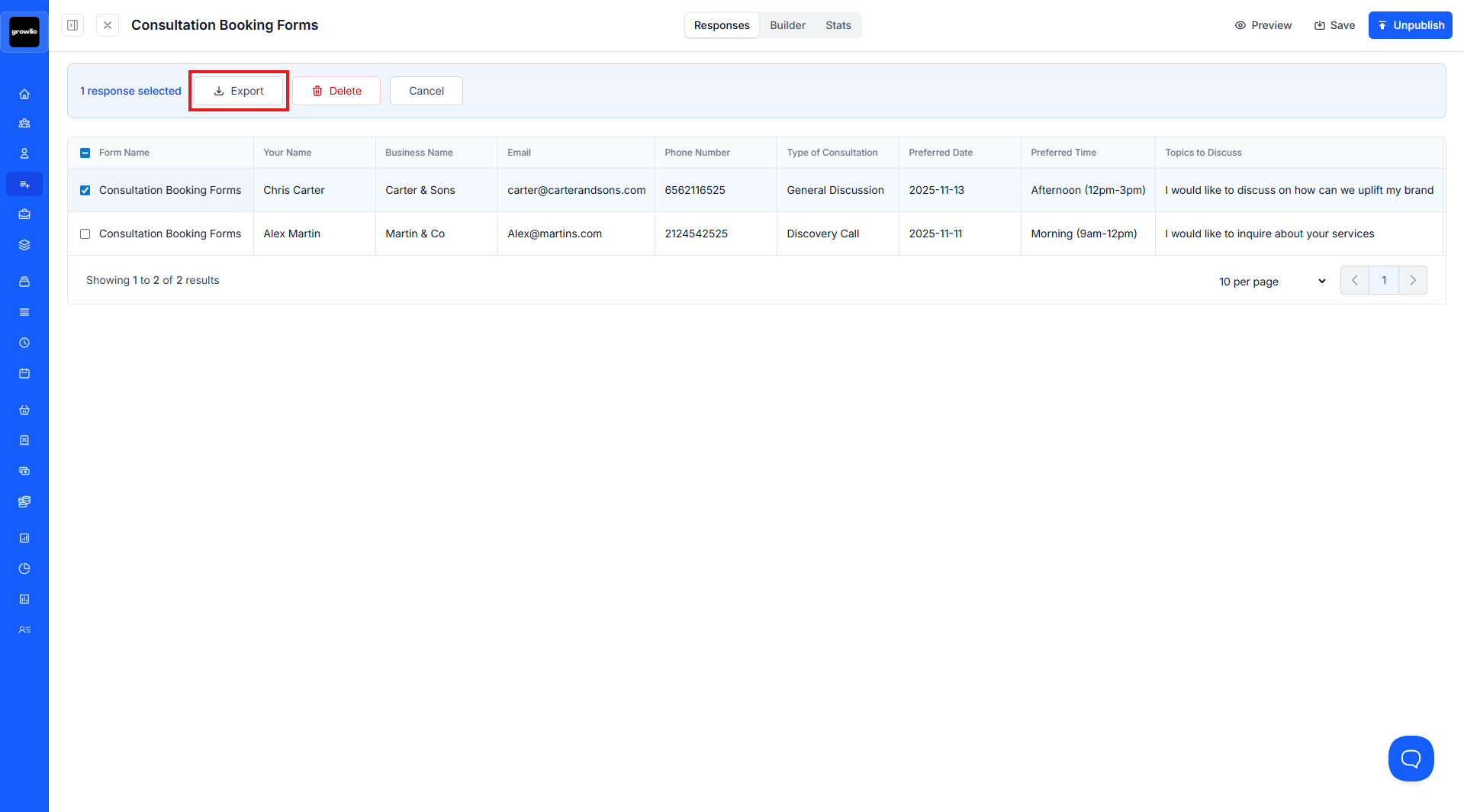 Exporting form data gives you flexibility to analyze responses in spreadsheets, import into CRM systems, share with stakeholders, or create backups. growlio makes exporting simple while offering options to export all responses or filtered segments. This guide covers everything about exporting form submission data effectively.